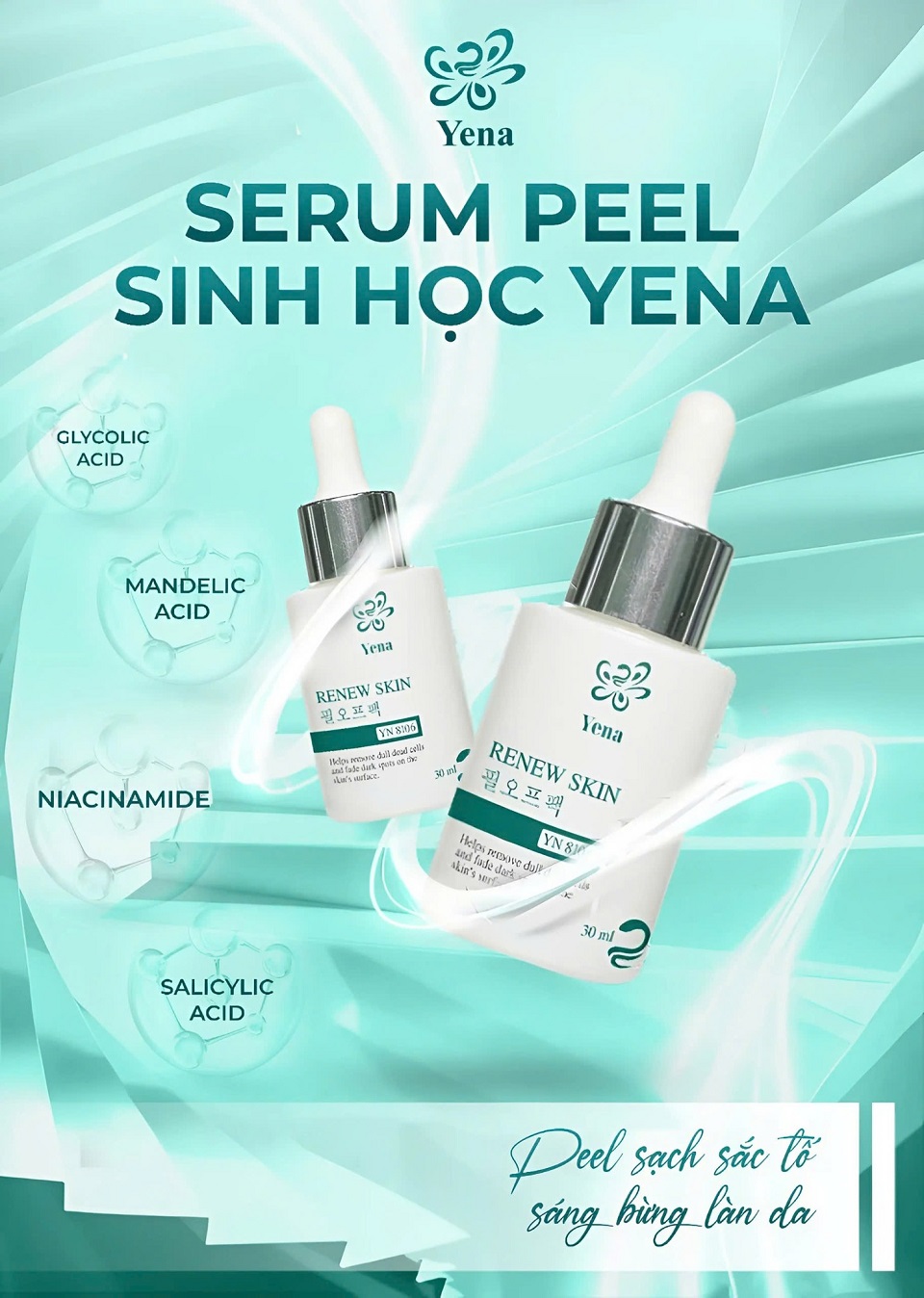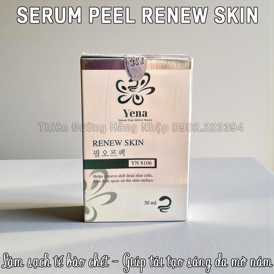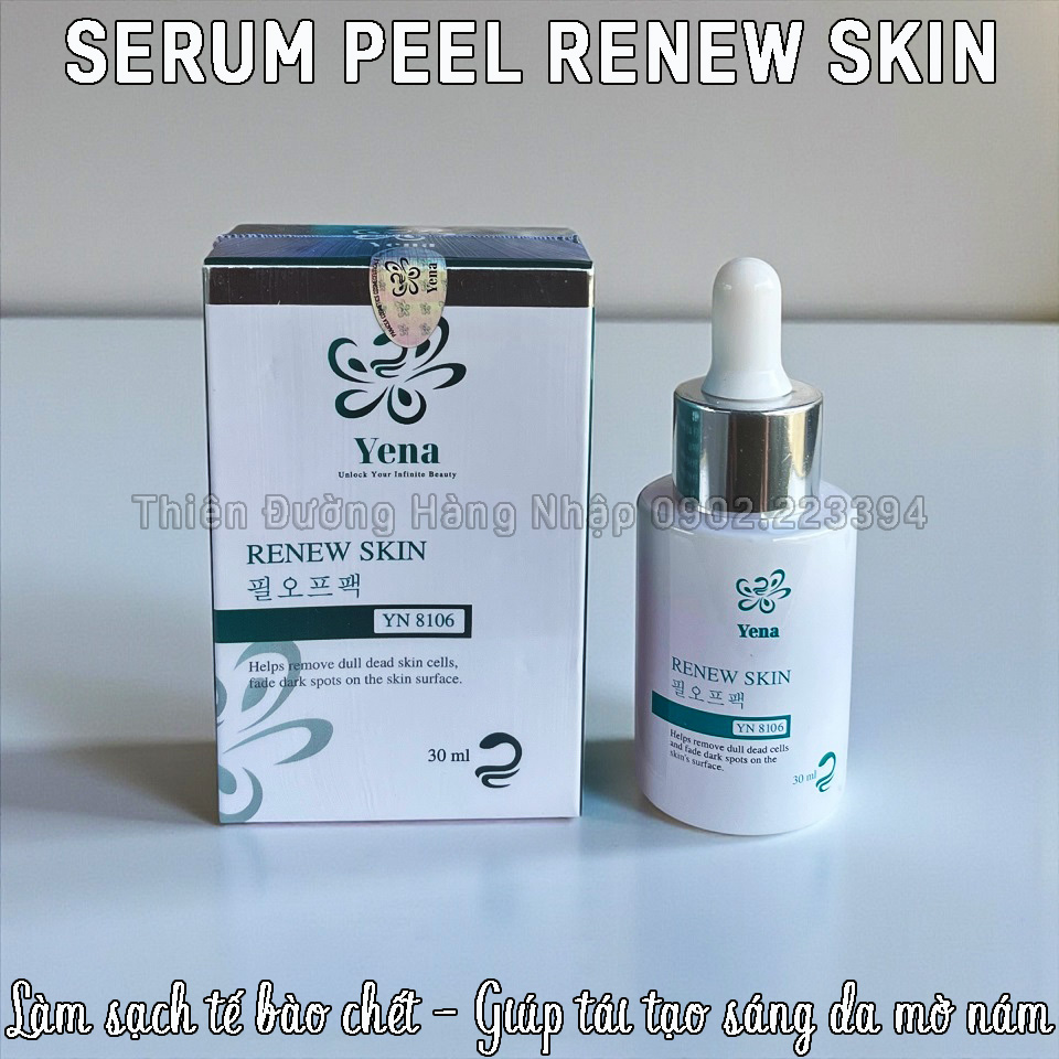 SERUM PEEL SINH HỌC RENEW SKIN YENA - Chai 30ml - Xuất xứ: Việt Nam (Dược Mỹ Phẩm Yena công nghệ Hàn Quốc) - Mã vạch: 8938553919154 Giá lẻ: 490.000 đồng/Chai - Mua sỉ vui lòng inbox zalo 0902.223394 hoặc để được nhiều ưu đãi hơn