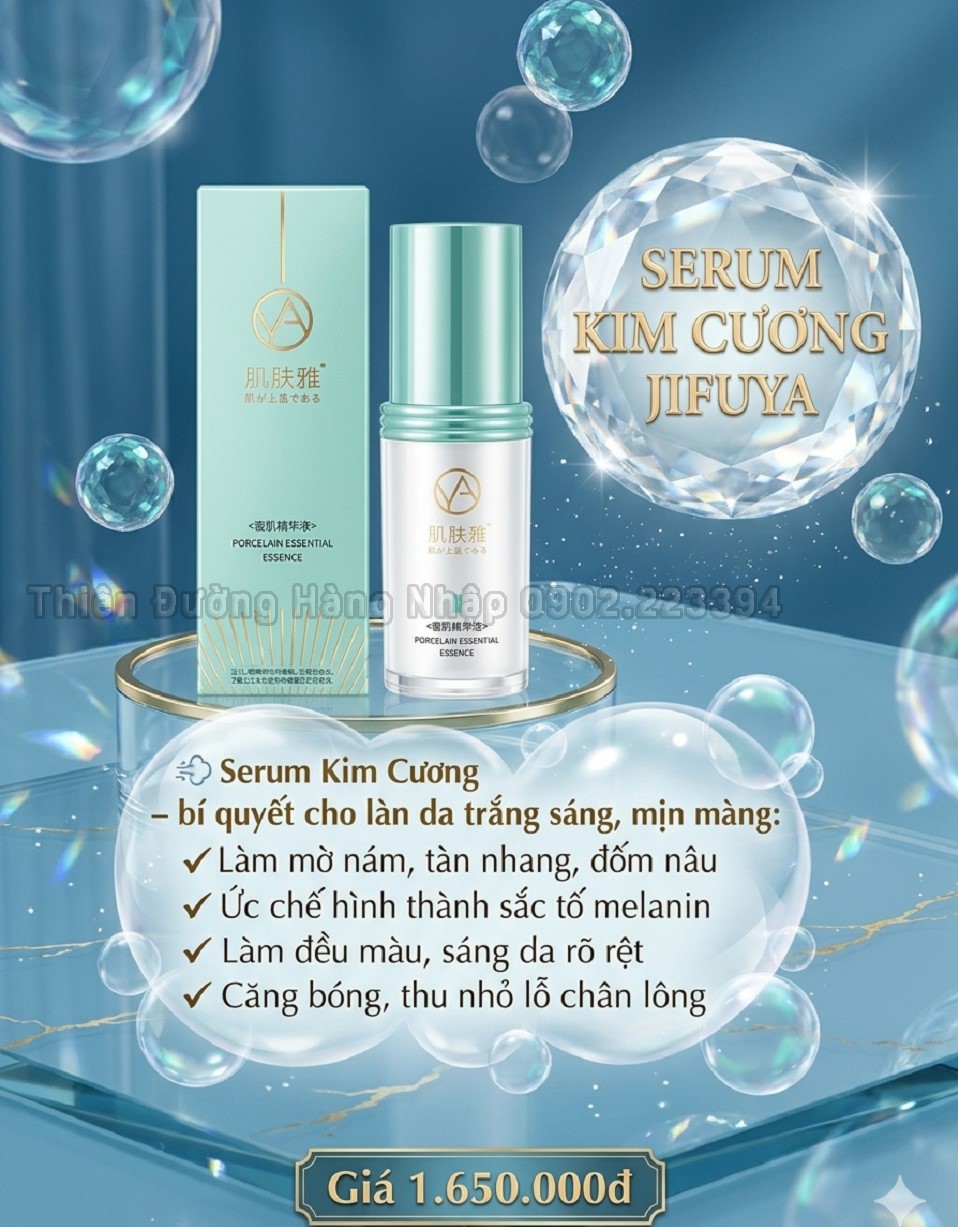SERUM KIM CƯƠNG JIFUYA Porcelain Essential Essence - Thể tích: 20ml - Xuất xứ: JifuyaHong Kong - Mã vạch: Giá lẻ: 1.650.000 đồng/Chai (Trước khi mua hàng xin vui lòng liên hệ Zalo: 0902 22 33 94 để nhận ưu đãi và được tư vấn kỹ về sản phẩm)