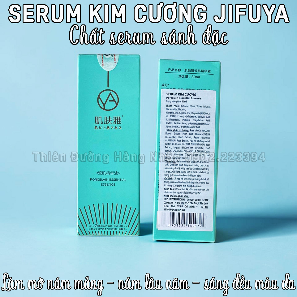 SERUM KIM CƯƠNG JIFUYA Porcelain Essential Essence - Thể tích: 20ml - Xuất xứ: JifuyaHong Kong - Mã vạch: Giá lẻ: 1.650.000 đồng/Chai (Trước khi mua hàng xin vui lòng liên hệ Zalo: 0902 22 33 94 để nhận ưu đãi và được tư vấn kỹ về sản phẩm)