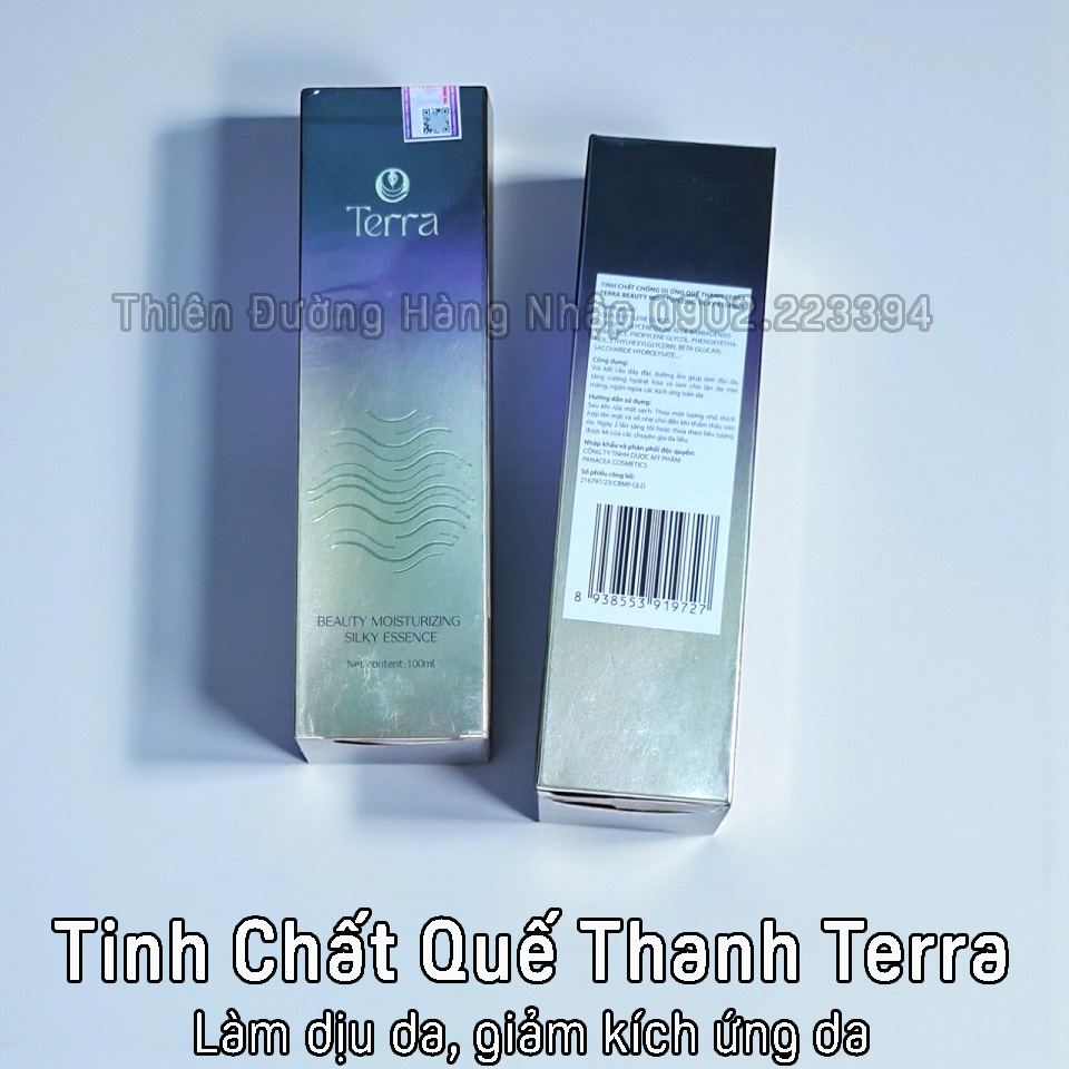 Phép màu đã đến với làn da "Siêu Nhạy Cảm - Da Mỏng Yếu" khi trong quá trình điều trị TINH CHẤT CHỐNG DỊ ỨNG QUẾ THANH TERRA Beauty Moisturizing Silky Essence - Chai 100ml - Xuất xứ: Sản phẩm của hệ thống Terra - Mã vạch: 8938553919727 6941545113753 Giá lẻ: 1.200.000 đồng/Chai